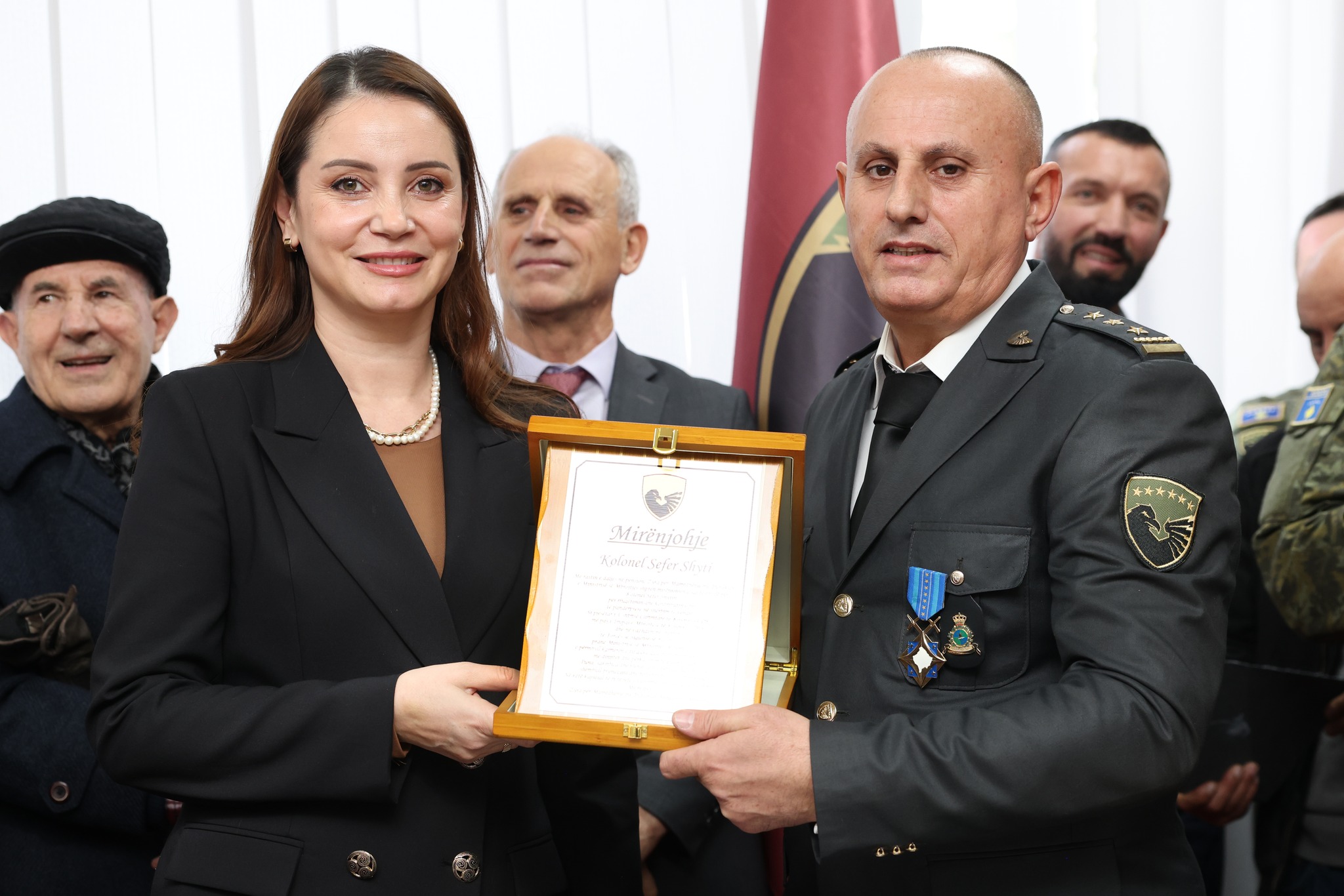 Me kรซtรซ rast, ministri nderoi kolonelin me Medaljen pรซr โShรซrbim tรซ Shquarโ, si mirรซnjohje pรซr shรซrbimin e jashtรซzakonshรซm dhe meritor nรซ Forcรซn e Sigurisรซ sรซ Kosovรซs dhe nรซ Ministrinรซ e Mbrojtjes.
