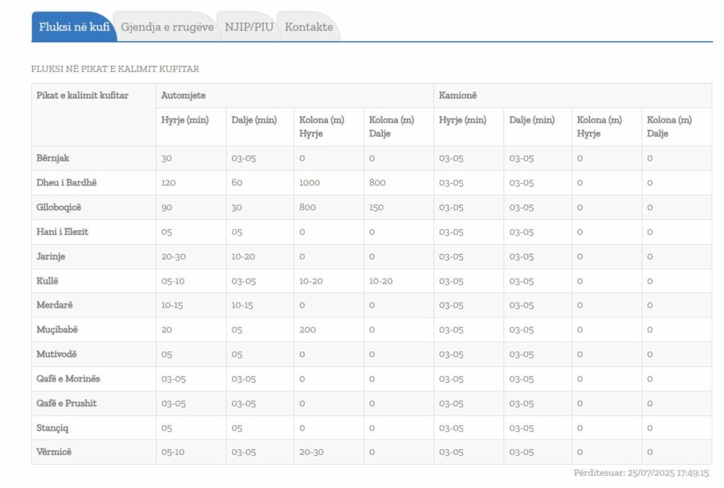 Qendra Kombëtare për Menaxhim Kufitar ka përditësuar të dhënat për gjendjen në pikat kufitare