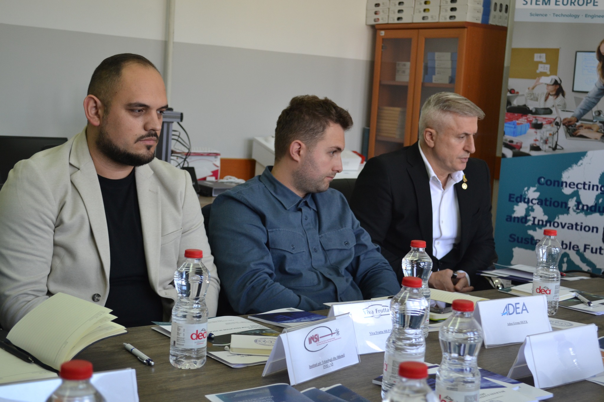 Në panel morën pjesë: Prof. Dr. Xhevdet Thaqi, Dekan i Fakultetit të Shkencave të Aplikuara dhe Koordinator i Projektit CoVE STEM Europe; Ismajl Baftjari nga kompania INSI; dhe Gëzim Selimi nga Grande Calabria.