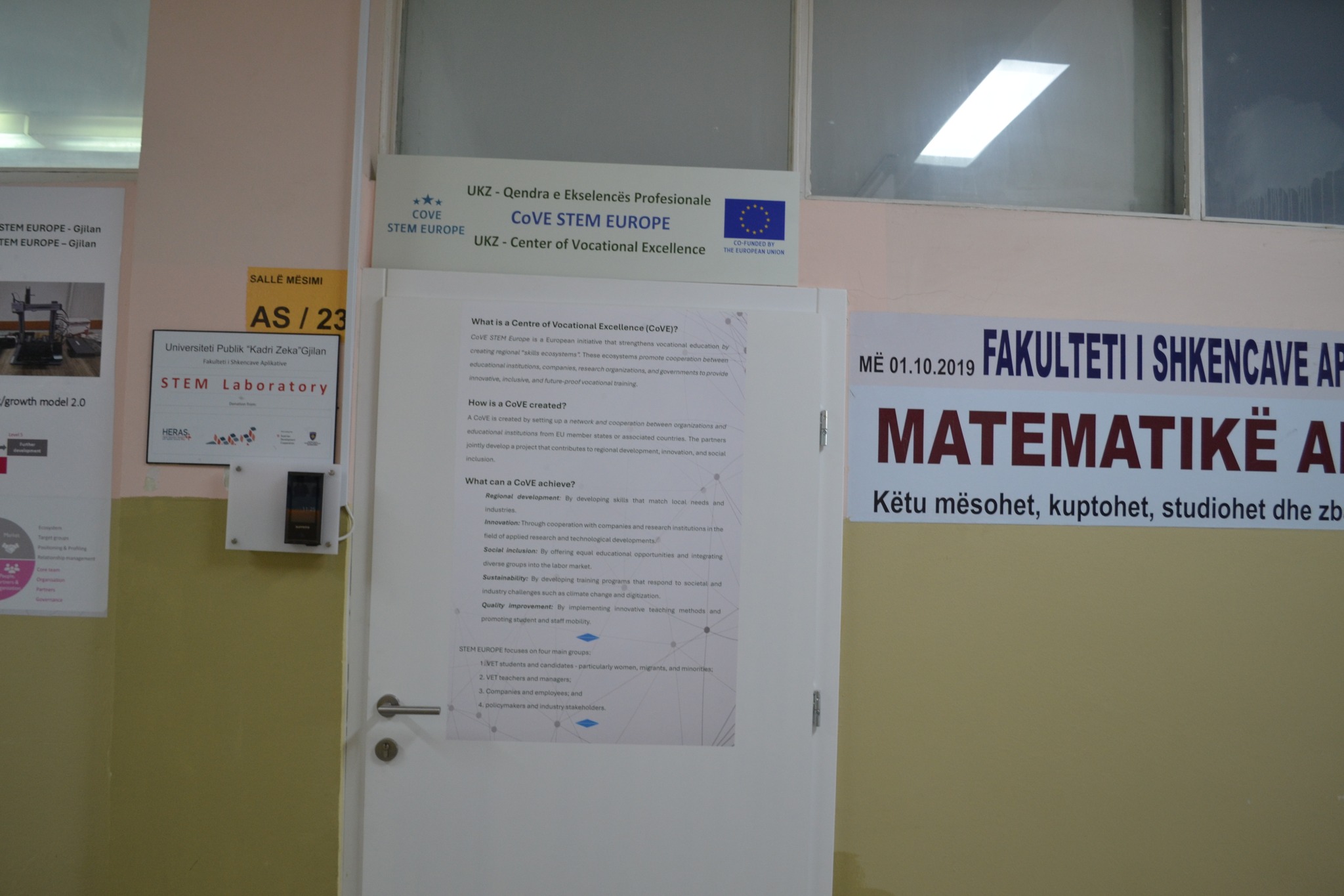 Në Universitetin Publik “Kadri Zeka” në Gjilan, në praninë e një numri të madh përfaqësuesish të ndërmarrjeve industriale, të menaxhmentit të UKZ-së, të Fakultetit të Shkencave të Aplikuara (FSHA) dhe Fakultetit të Shkencave Kompjuterike (FSHK), u shënua themeli i Qendrës Rajonale të Ekselencës Profesionale – CoVE STEM Europe për Ballkanin Jugperëndimor.