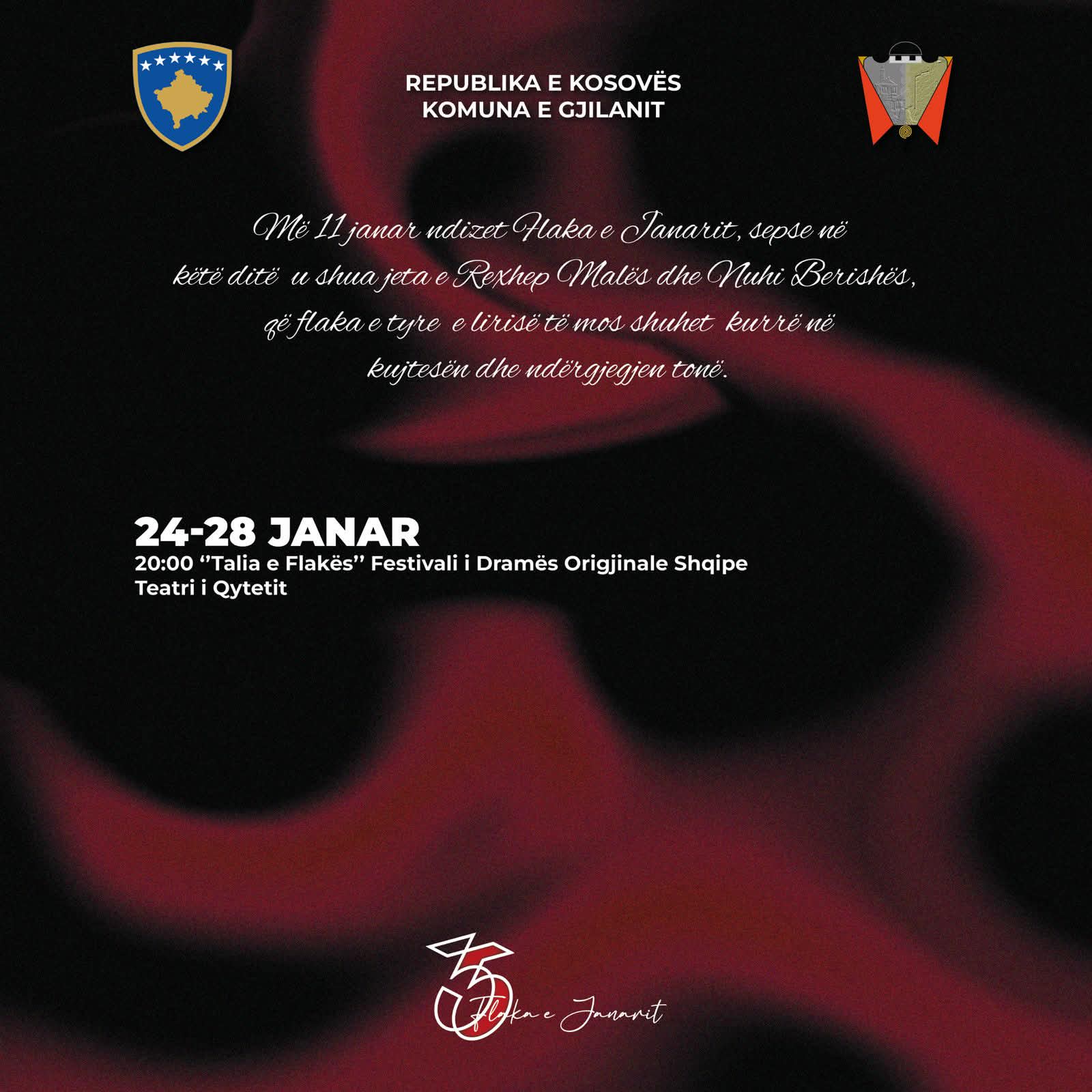 Prej 24-28 janar 2026, për çdo mbrëmje, në orën 20:00, do të shfaqen dramat më të reja shqipe, në Teatrin e Gjilanit.