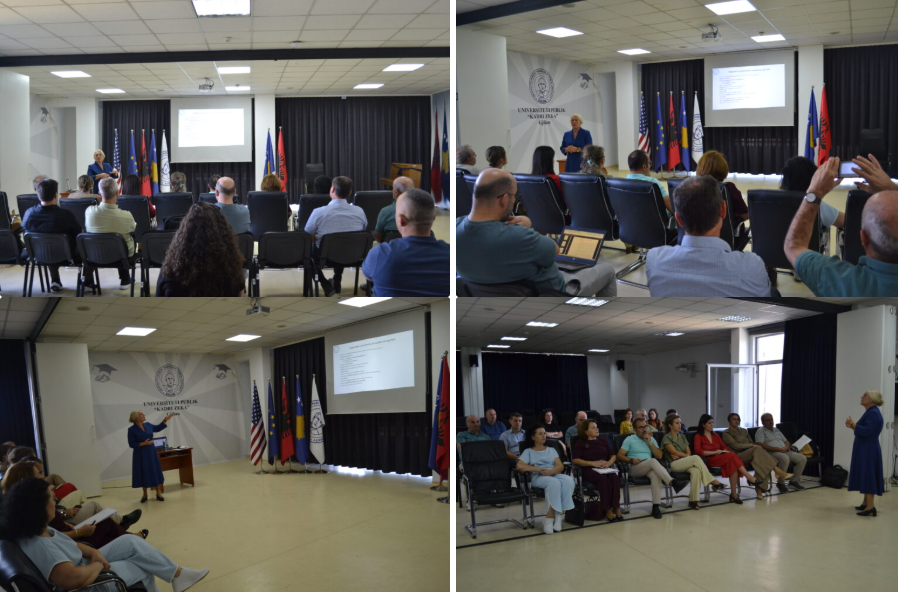 Trajnimi u realizua nga Prorektorja për Zhvillim Akademik dhe Cilësi, Prof. Asoc. Dr. Voglushe Kurteshi, në kuadër të aktiviteteve të parapara në Kalendarin për Cilësi, me rastin e fillimit të vitit të ri akademik. Një nga pikat kyçe të këtij kalendari është monitorimi dhe rishikimi i programeve studimore të akredituara, bazuar në procedurat pasakredituese të përcaktuara nga AKA.